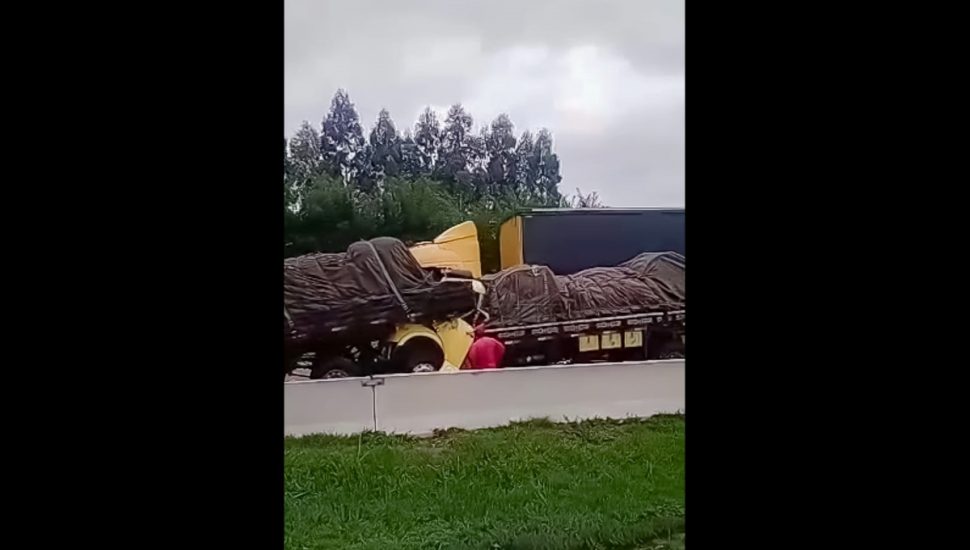 Duas pessoas morreram em um grave acidente registrado no início da tarde desta quinta-feira (13) no Contorno Leste, em Curitiba. Foram quatro caminhões envolvidos no acidente. O local está com pista molhada por causa da chuva que atinge Curitiba nesta quinta-feira.