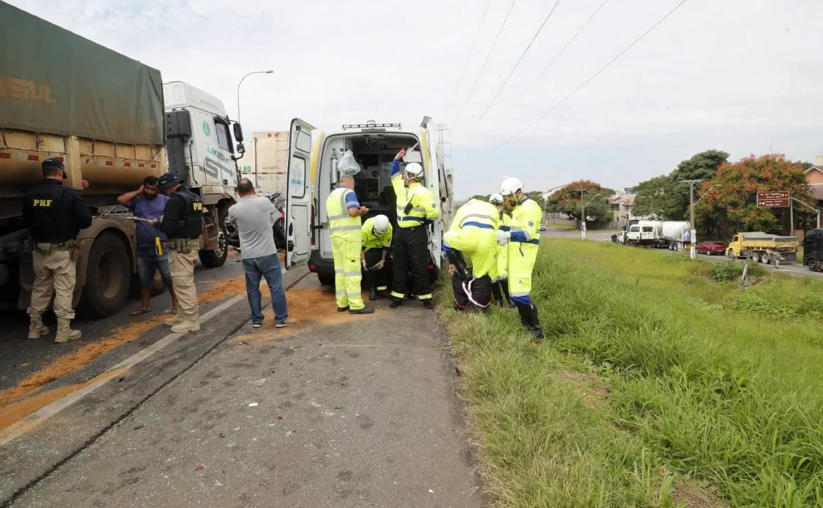 No sentido Campo Largo, lentidão de curiosos que reduzem a velocidade para verificar a batida trágica.