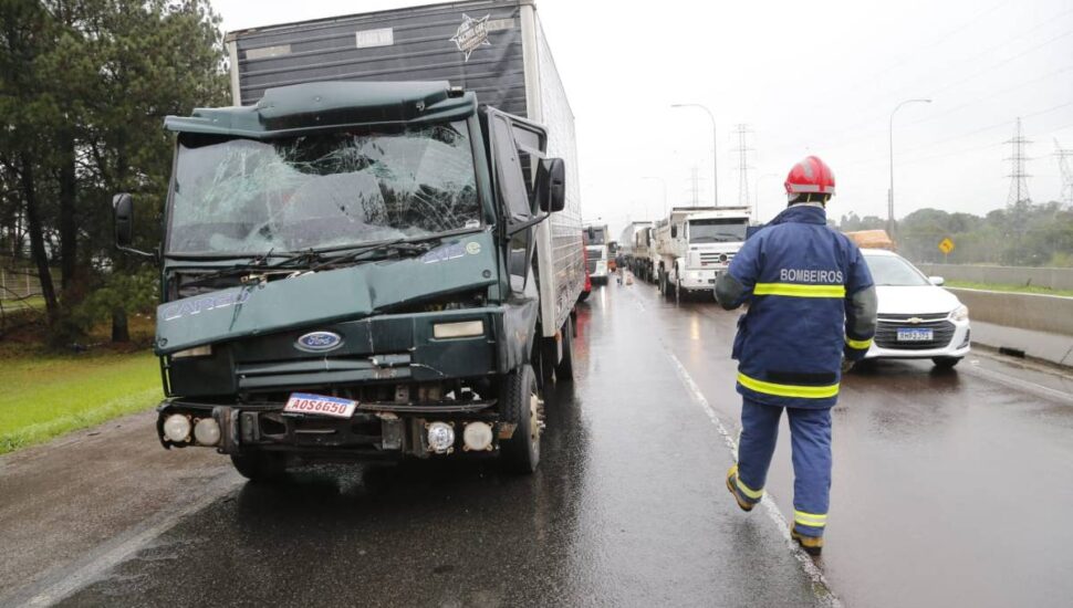 Um acidente envolvendo dois caminhões deixou o trânsito complicado no Contorno Sul, em Curitiba, no fim da manhã desta quarta-feira (09). A colisão traseira aconteceu entre a Rua Eduardo Sprada e a BR-277, na região da Cidade Industrial de Curitiba (CIC).