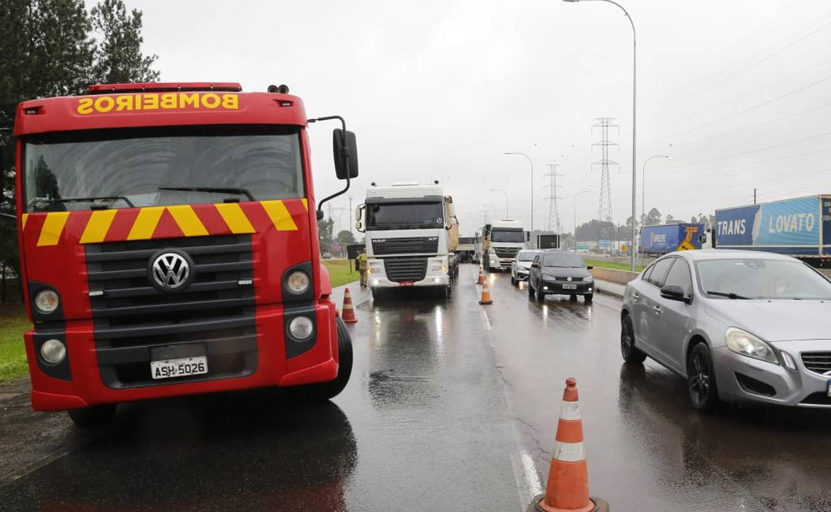 Contorno Sul tem trânsito complicado após acidente entre caminhões; Mulher prestou primeiros socorros