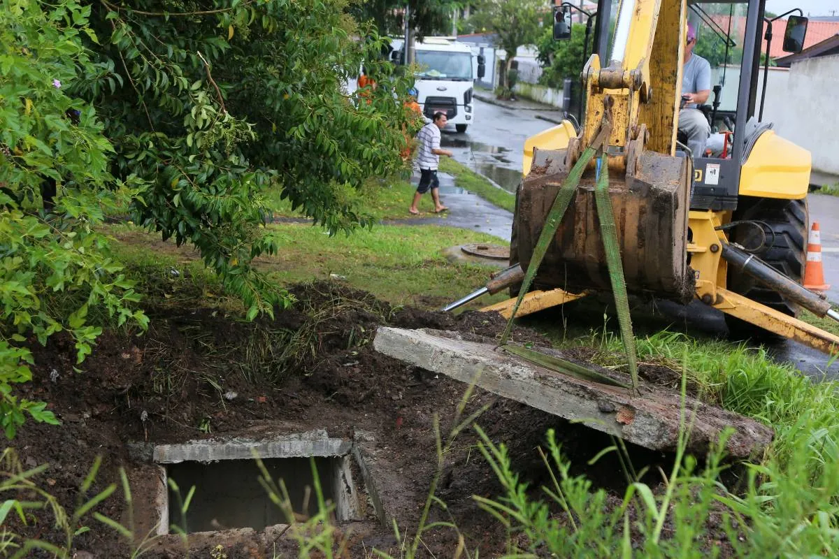 Nesta segunda-feira (3), as equipes continuarão os trabalhos de limpeza das galerias, e também realizarão o serviço de desassoreamento, para solucionar o problema no local.