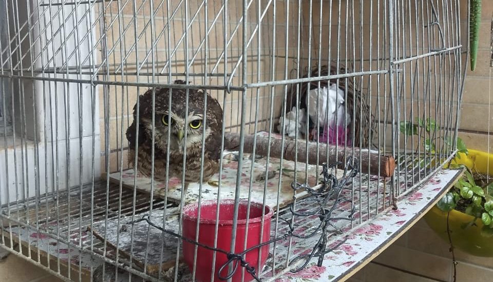 A coruja-buraqueira era mantida ilegalmente em cativeiro e apresentava cortes nas asas. Tanto a ave quanto a cadela foram encontrados em precárias condições de higiene e sem assistência veterinária. A ação foi acompanhada pela Guarda Municipal.