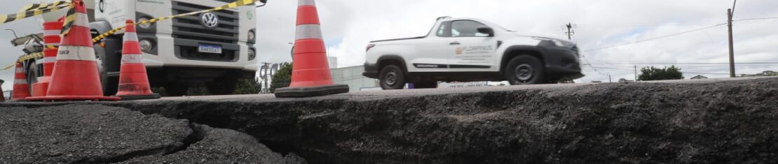 Cratera se abre na BR-277, em Curitiba, e interdita parte da pista