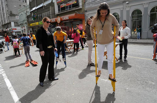 A Praça Carlos Gomes recebeu na manhã desta segunda-feira (22), Dia Mundial sem Carro, a vivência de mobilidade, atividade que faz parte da Semana Nacional de Trânsito, comemorada de 18 a 25 de setembro. No espaço, montado na Rua Monsenhor Celso, entre a José Loureiro e a Pedro Ivo, quem passava por lá, além de 64 alunos da Escola Municipal Maria do Carmo Martins, da CIC, foram convidados para vivenciar como é o deslocamento de pessoas com deficiência, ou com mobilidade reduzida.