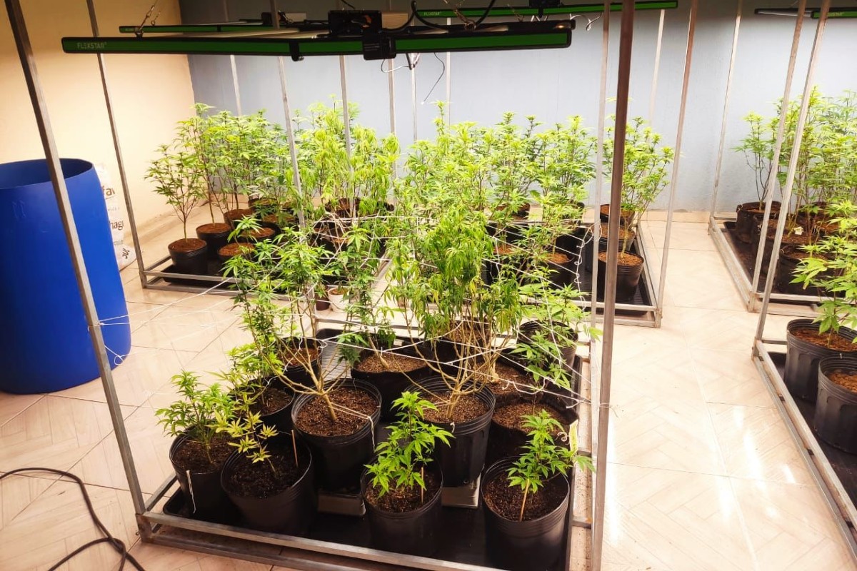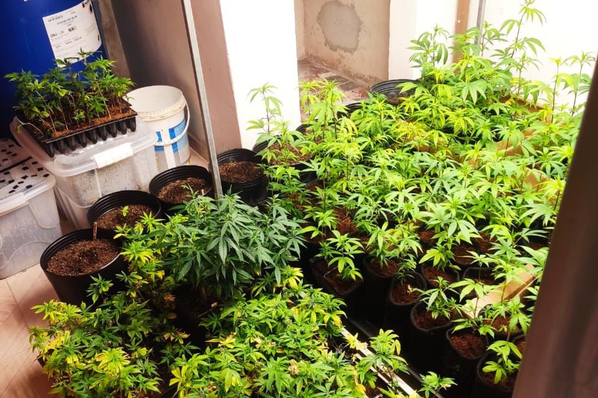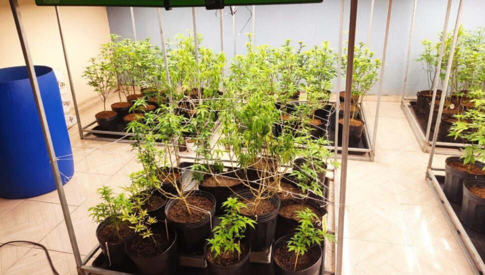 No local, os policiais encontraram espaços com teto falso com investimentos em lâmpadas, ar-condicionado, termômetros e adubos especiais, que auxiliam na produção da substância ilícita.