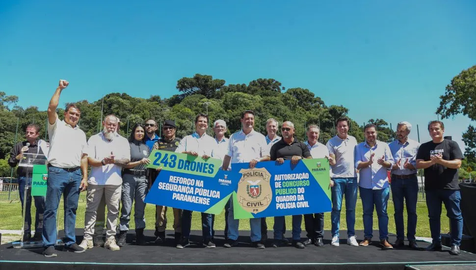 A Prefeitura de Curitiba anunciou nesta sexta-feira (6/2) que a Guarda Municipal (GMC) ganhará um grupamento aéreo com a futura aquisição de drones para reforçar o combate ao crime na capital paranaense. O anúncio foi feito pelo prefeito Eduardo Pimentel durante evento no Parque Barigui, onde o governo estadual realizou a entrega de 243 drones e acessórios às forças de segurança do Paraná.