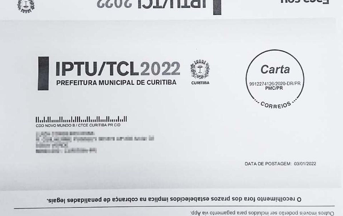 Na carta enviada pelos Correios, o contribuinte isento do IPTU receberá um boleto para a pagamento da TCL em cota única e vencimento em 10 de fevereiro. Também é possível gerar o documento pela internet https://iptu-dam.curitiba.pr.gov.br/Parcelamento e pelo Curitiba APP, ou nos núcleos da Secretaria de Planejamento, Finanças e Orçamento que funcionam nas dez Ruas da Cidadania.