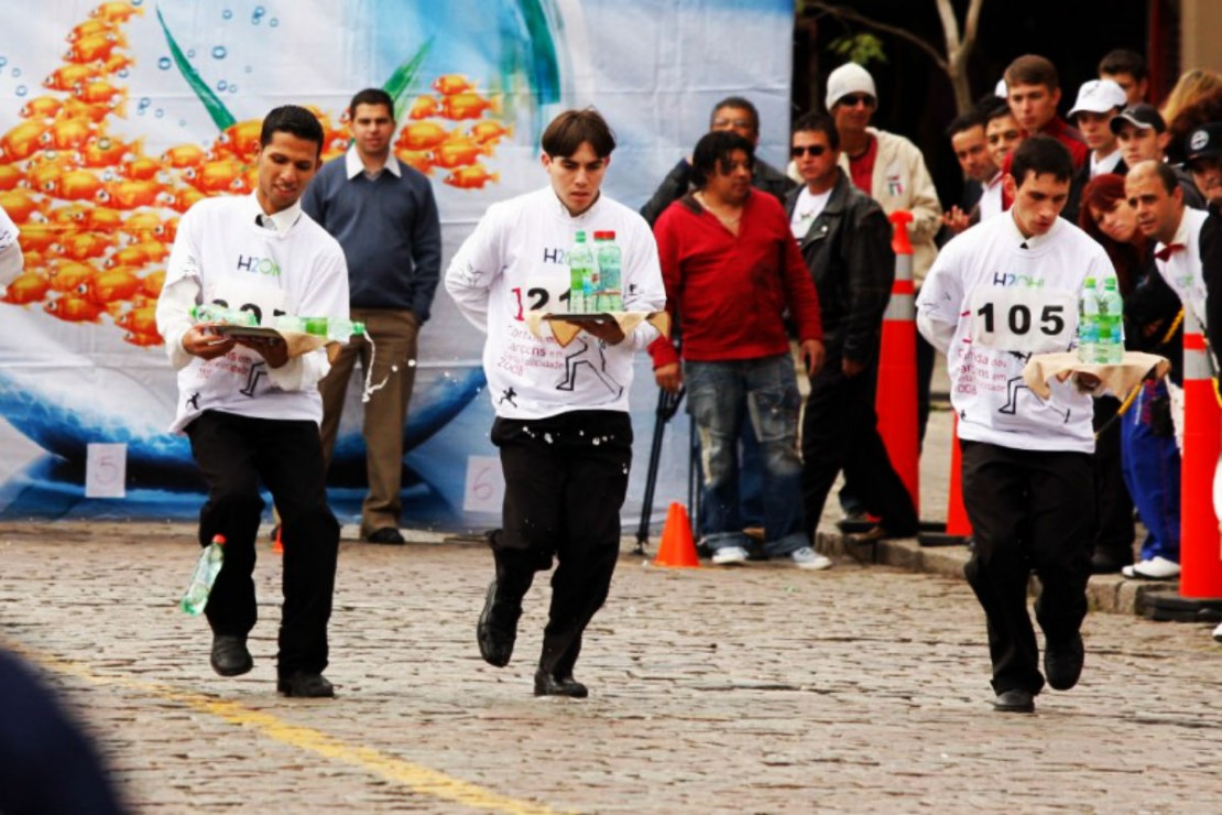 As mulheres vão fazer uma disputa geral, enquanto os homens serão divididos em três categorias: até 35 anos, de 36 a 55 e acima de 56 anos. Cada participante levará duas garrafas cheias sobre a bandeja, sendo uma de cerveja (vidro) e uma de água (plástico), além de dois copos cheios de água. Eles deverão cruzar a linha de chegada sem derrubar nada e nem usar a outra mão, sob pena de desclassificação. Vestidos a caráter, os “atletas de salão” prometem dar um show de competência e habilidade.