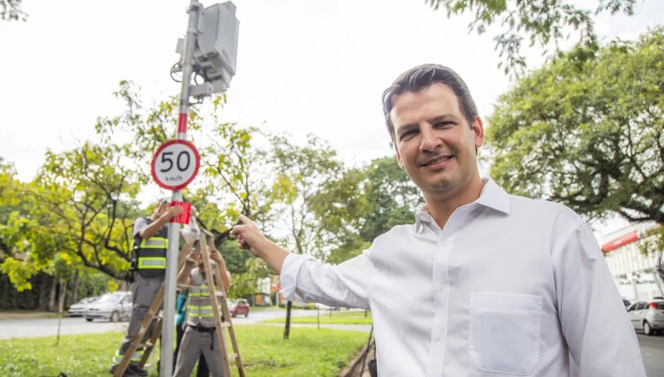 Prefeito Eduardo Pimentel acompanha a instalação da nova sinalização de radares, na Av. Nossa Senhora da Luz, no Jardim Social. Curitiba, 24/01/2025. Foto: Pedro Ribas/SMCS
