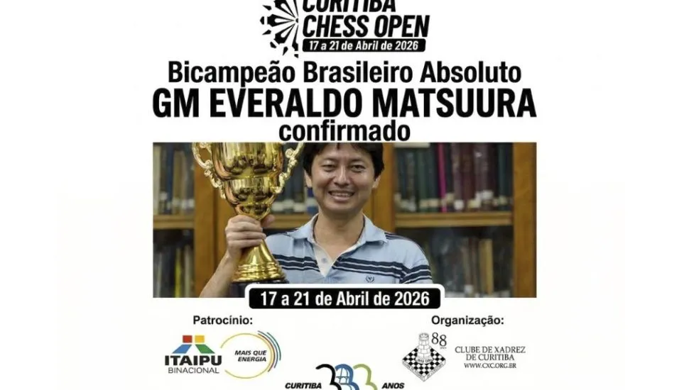 Curitiba recebe Chess Open 2026 com grandes nomes do xadrez e apoio da Prefeitura.
