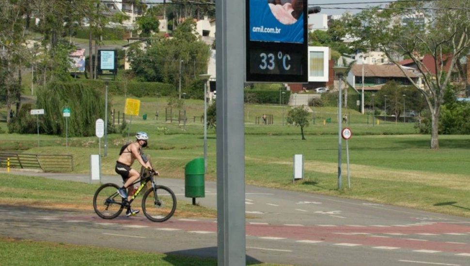 O sol apareceu cedo na capital e, com essa “lua”, tinha gente aproveitando o início da tarde para renovar a carga de vitamina D no Parque Barigui. Por lá, o termômetro ao ar livre que fica na rotatória da Av. Cândido Hartmann marcou 33ºC por volta das 15h. Algumas cidades do Paraná passaram dos 40ºC.