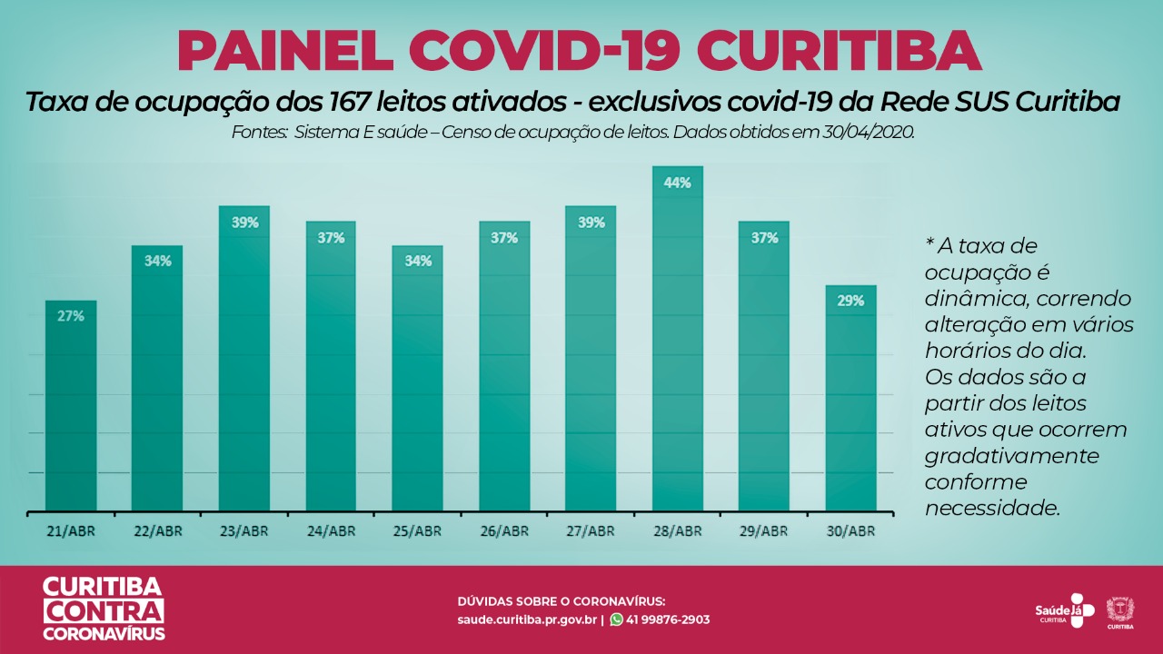 Conforme o boletim, Curitiba tem hoje 61 pacientes internados, 31 deles em unidades de terapia intensiva (UTI) e 12 em estado mais grave, que contam com o auxílio de ventilação mecânica para respirar. No total, a cidade conta com 237 leitos de UTI exclusivos para covid-19 reservados para uso. Até o momento foram ativados 167 deles. Destes, a taxa de ocupação no momento é de 29%.