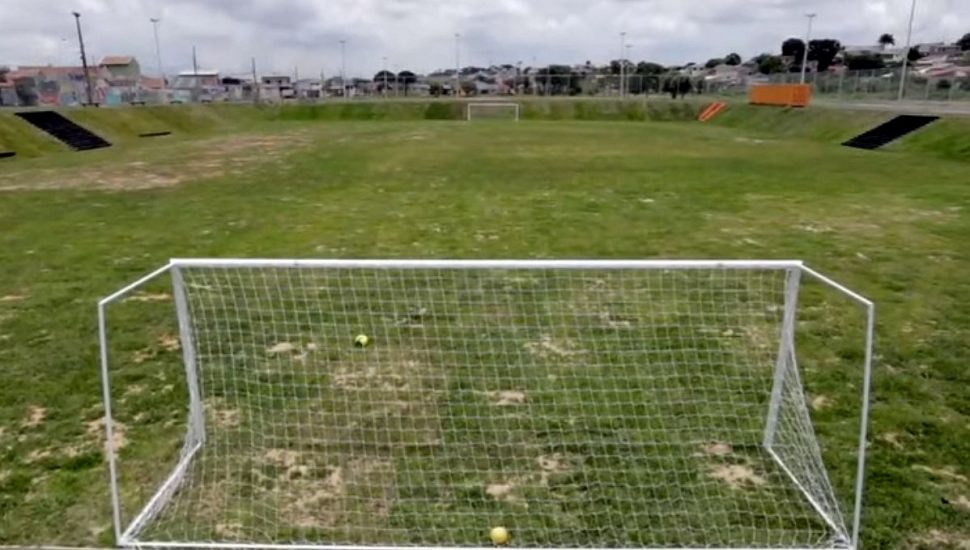 Após entregar uma bola para a filha do presidente do Shabureya, Greca disse: “Está inaugurado o primeiro estádio hídrico do Brasil. Pode alagar”.