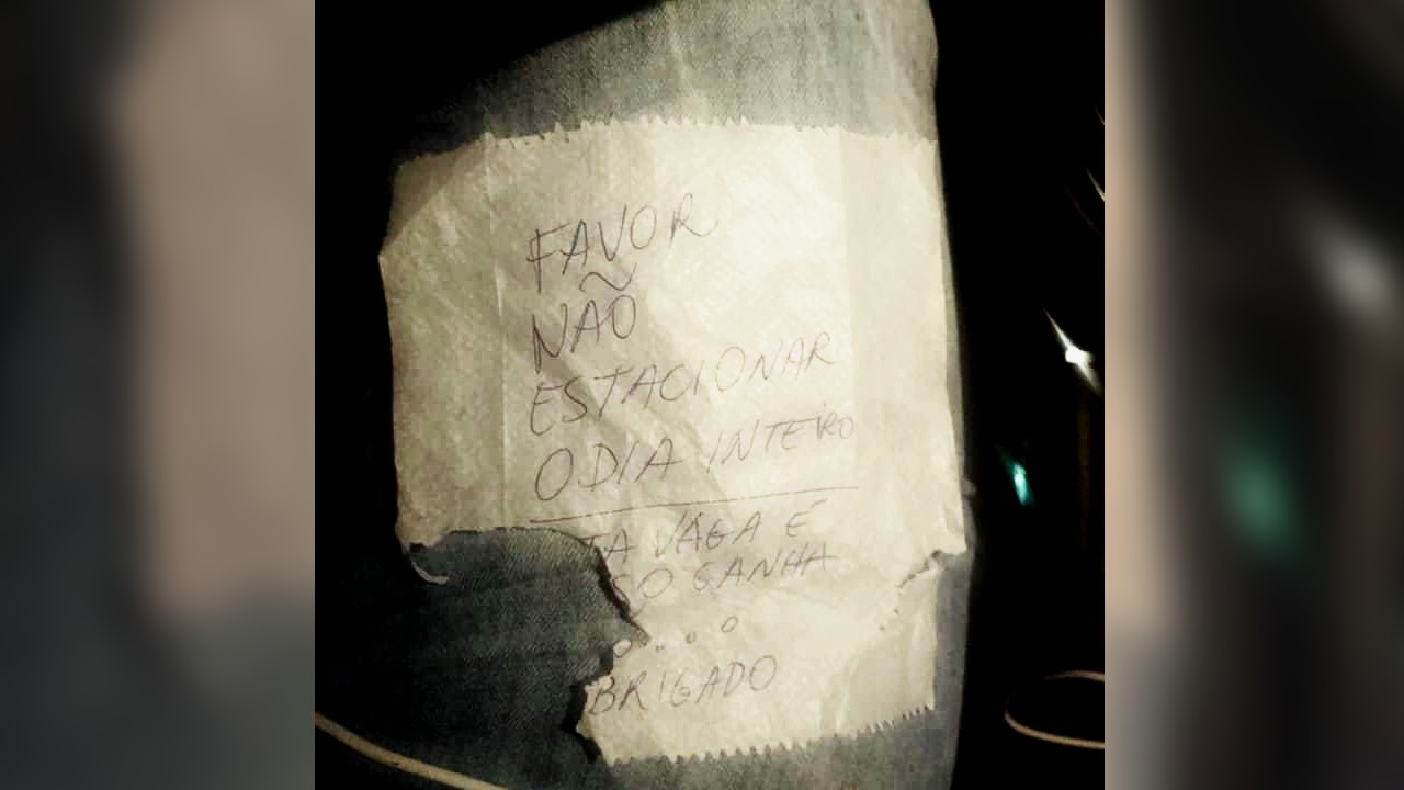 O barbeiro Evandro Galvão, de 32 anos, ficou surpreso com um bilhete deixado na porta do seu carro no fim da tarde de quarta-feira (30). O veículo estava estacionado próximo onde ele trabalha, na Avenida Nossa Senhora de Lourdes, no bairro Jardim das Américas, em Curitiba, com o seguinte recado em um guardanapo: “Favor não estacionar o dia inteiro”.