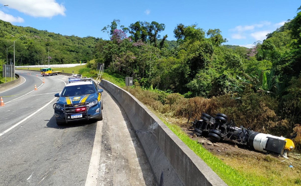De acordo com a PRF o acidente aconteceu próximo das 8h no quilômetro 668 da rodovia, no sentido Garuva, em Santa Catarina. Com o tombamento da carreta carregada de ácido sulfúrico pode ter ocorrido vazamento, o que ainda não foi confirmado pelas equipes no local. O trecho é muito perigoso e já foi palco para graves acidentes.