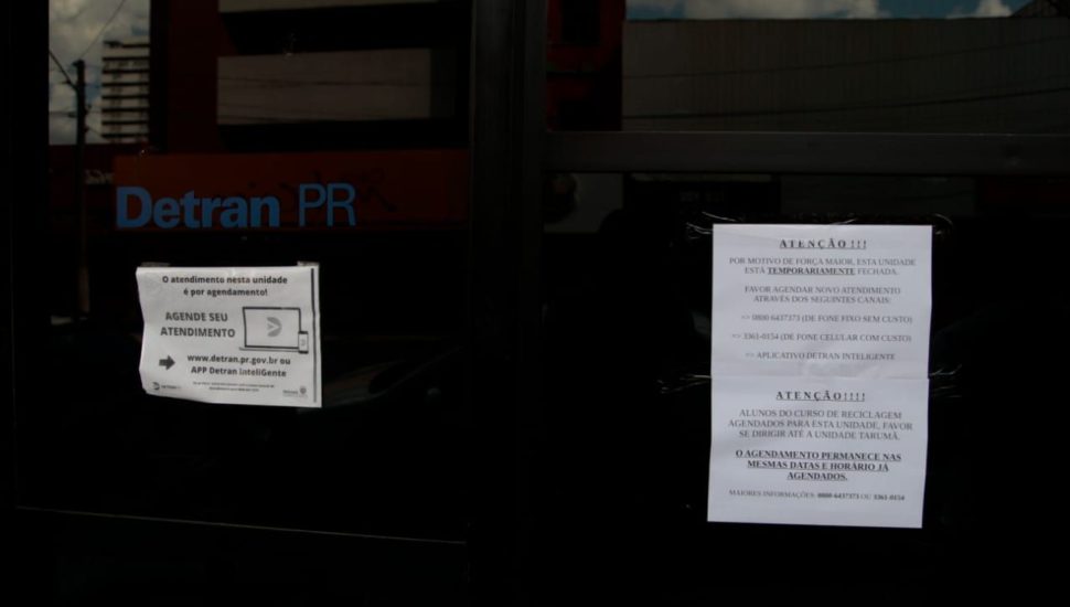 A agência do Departamento de Trânsito do Paraná (Detran/PR) na Rua João Negrão, no Centro de Curitiba, está fechada nesta segunda-feira (16) e deve reabrir ao público após sete dias. O motivo é a suspeita de que o gerente da unidade, que teve contato com uma pessoa com suspeita de infecção, possa ter contraído coronavírus. A orientação para que o público procure atendimento na sede central do Detran no bairro Tarumã.