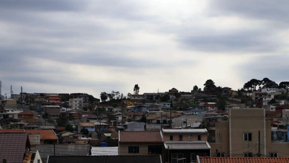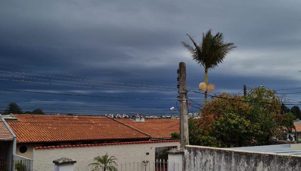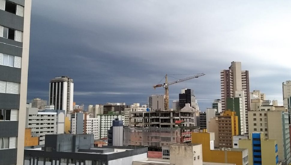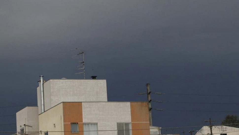 A frente fria que avança pelo Paraná deve trazer chuva forte para Curitiba nesta tarde de quinta-feira (26). Segundo o Instituto Nacional de Meteorologia (Inmet), há risco de pancadas de chuva com volume entre 30 e 60 milímetros por hora ou 50 e 100 milímetros ao longo do dia. Um alerta de nível Laranja foi emitido pelo instituto, que prevê tempestade com ventos intensos, entre 60 e 100 km/hora, e queda de granizo. Por volta das 14 horas desta quinta-feira, alguns bairros já se apresentavam com o céu encoberto de nuvens, dando a sensação de que o dia se transformou em noite.