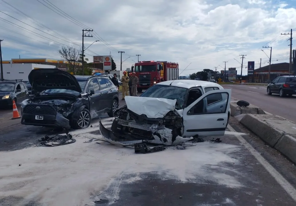 No outro acidente, quatro pessoas ficaram feridas após uma colisão frontal, no trecho urbano, em São José dos Pinhais.