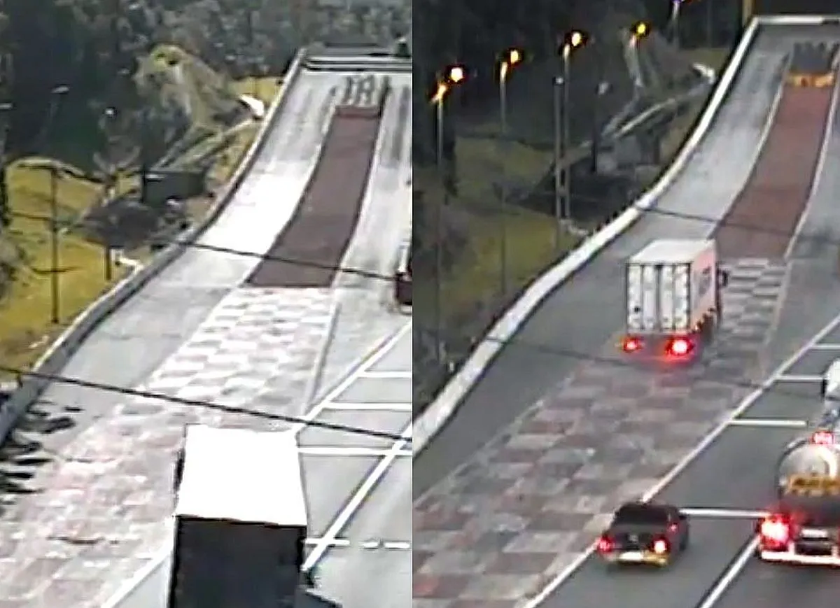 Ainda na semana, outros dois motoristas de caminhões utilizaram, em um intervalo de menos de 30 segundos, a mesma área de escape .