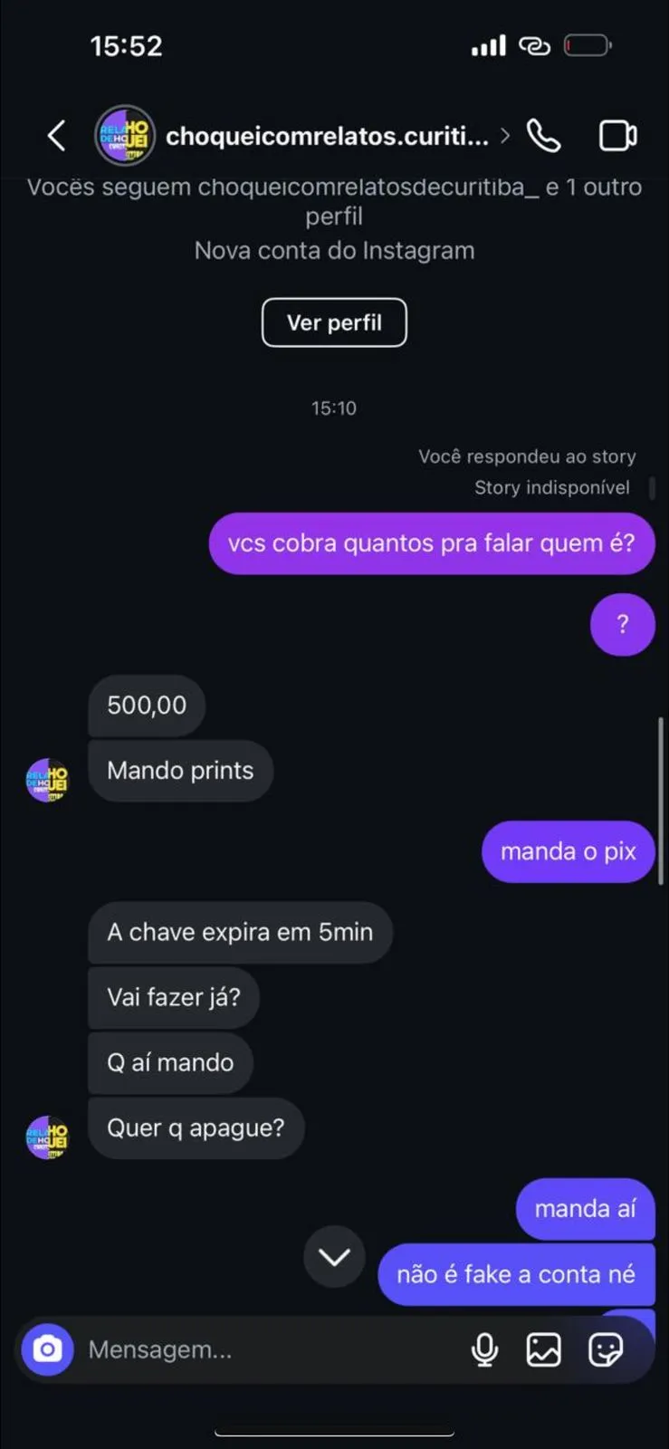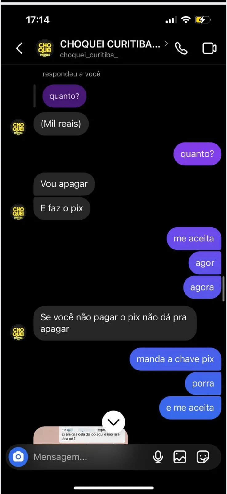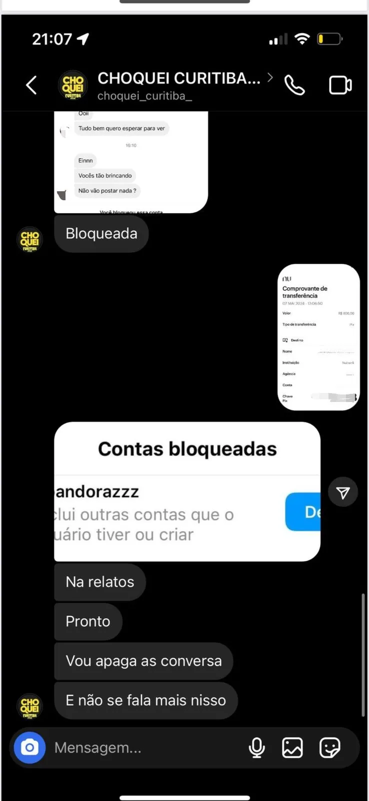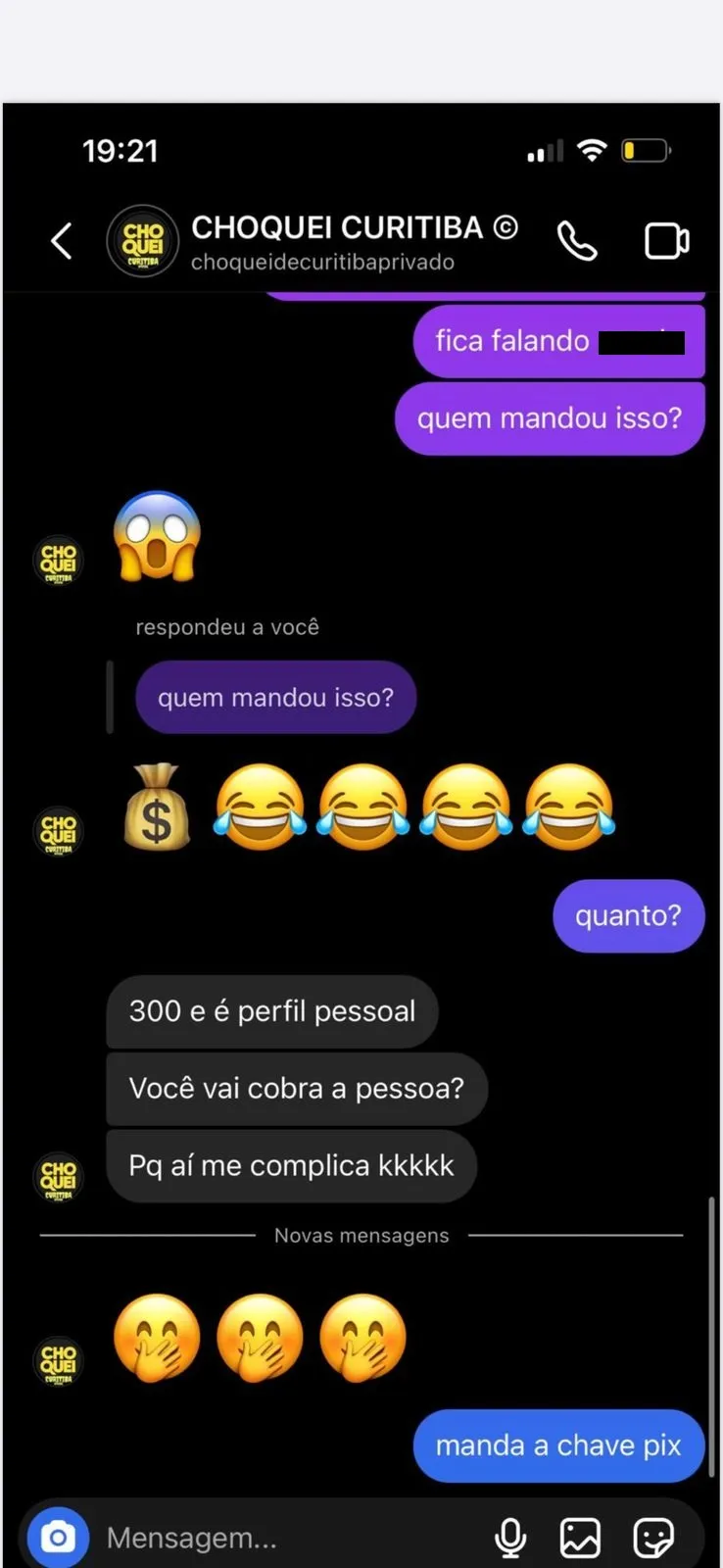 Vítimas denunciaram extorsão do perfil Choquei Curitiba