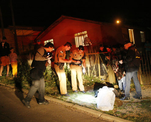 Segundo o cabo Leandro Chrestani, do 17.º Batalhão da Polícia Militar, eles foram chamados pelos moradores da rua que ouviram tiros. “Quando chegamos no local já encontramos os dois mortos e muita gente em volta dos corpos, isso até prejudicou o trabalho de preservação do local e o trabalhão do Instituto de Criminalísitica”, contou o policial. Próximo aos corpos foram apreendidas cápsulas de pistola calibre nove milímetros.