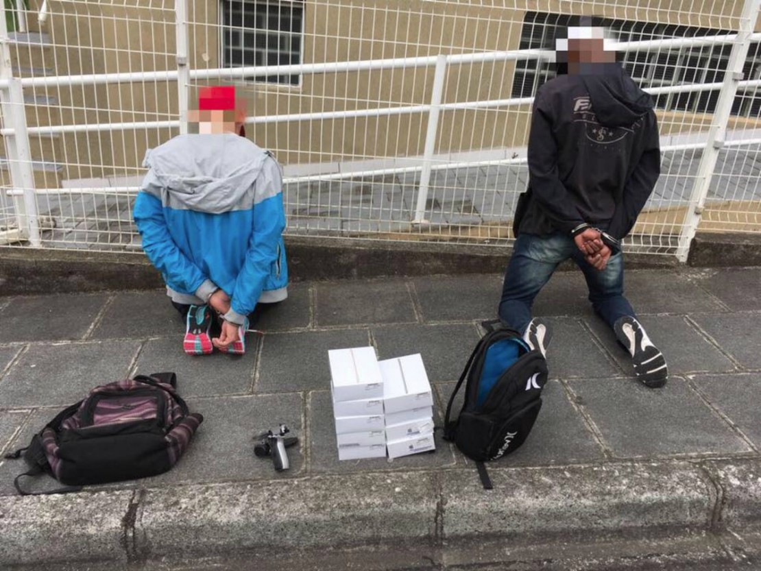 Contando apenas com a velocidade das próprias pernas, Paulo e Patrick foram localizados na rua Ângelo Zen. Eles corriam com os IPads quando deram de cara com uma equipe da GM e foram presos em flagrante. “Esses dois foram os autores do assalto na loja da Apple e a outra dupla, que roubou a loja da Samsung, escapou de carro pela contramão da rua Voluntários da Pátria”. Os suspeitos foragidos ainda não foram localizados.