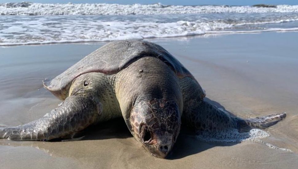 Tartaruga encontrada encalhada no Litoral do Paraná. Foto: Centro de Estudos do Mar da UFPR / divulgação.