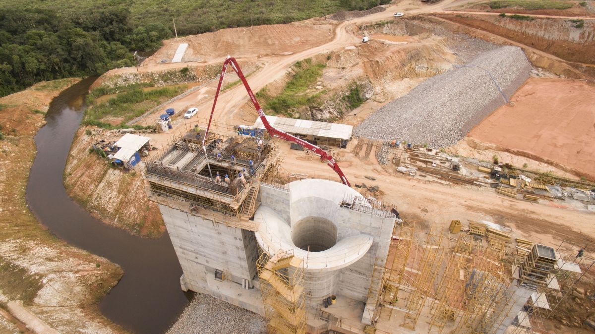 As estruturas de concreto armado estão 97% concluídas e servem para captação da água, regularização da vazão, vertedor (que permite extravasar de forma segura o volume excedente em períodos de cheias) e galeria de desvio que amortece o impacto da água. Nessa parte foram utilizadas 320 toneladas de aço. Também já foram instalados cerca de 50% dos equipamentos, que devem estar concluídos até maio.