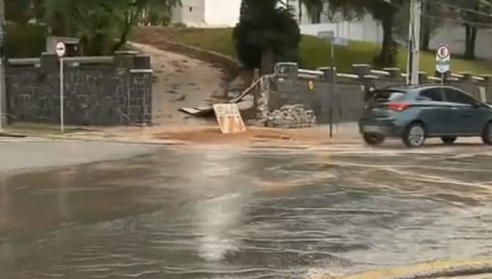 Um grande vazamento de água atravessou duas importantes ruas de Curitiba após um cano estourar na madrugada desta sexta-feira (3). A água corta a Saldanha Marinho com a Alameda Presidente Taunay, no bairro Bigorrilho, próximo à praça da Espanha. Equipes da Sanepar, empresa responsável pelo abastecimento de água no Paraná, já estão no local.