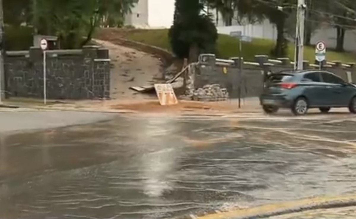 Um grande vazamento de água atravessou duas importantes ruas de Curitiba após um cano estourar na madrugada desta sexta-feira (3). A água corta a Saldanha Marinho com a Alameda Presidente Taunay, no bairro Bigorrilho, próximo à praça da Espanha. Equipes da Sanepar, empresa responsável pelo abastecimento de água no Paraná, já estão no local.