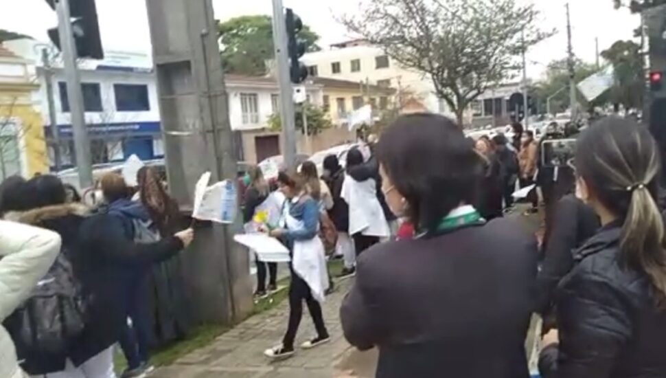 Enfermeiros protestam em Curitiba, em frente ao Hospital Pequeno Príncipe. Foto: Reprodução