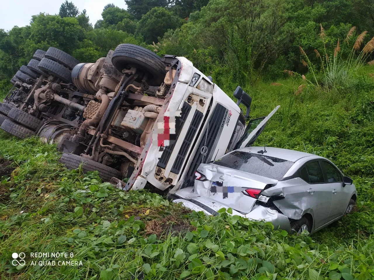 O acidente aconteceu por volta das 15 horas no km 137, na pista sentido Ponta Grossa, perto da praça de pedágio de São Luiz do Purunã. Estava chovendo no momento do engavetamento.