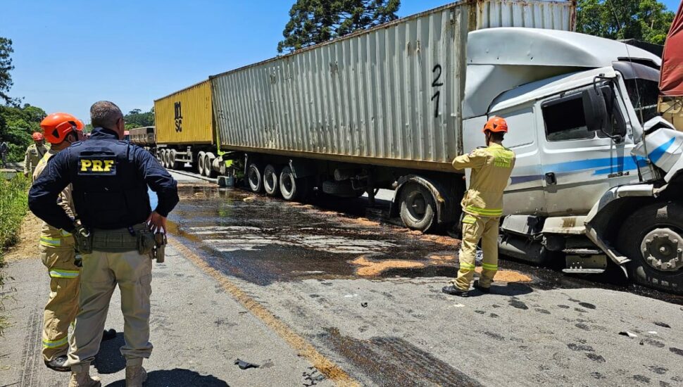Segundo a Policia Rodoviária Federal (PRF), a colisão foi no Km 59, no sentido Curitiba. Equipes do Corpo de Bombeiros estão no local para efetuarem os atendimentos necessários. Não existe previsão de liberação total do trecho, pois vai ser preciso retirar os veículos e efetuar a limpeza da pista.