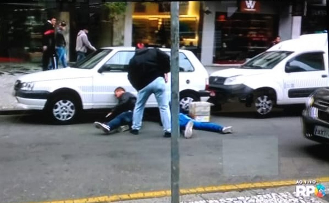 Os dois homens, conforme avaliação inicial da polícia, seriam suspeitos de tentar roubar um carro na Rua XV de Novembro. O policial passava bem na hora, à paisana, e flagrou a ação.