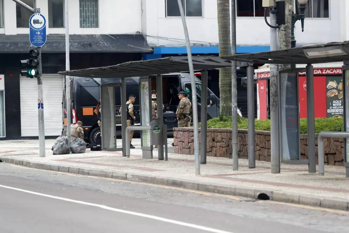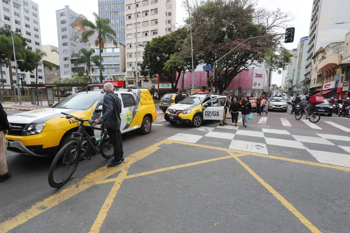 Perto das 13h20 a PMPR recolheu a mochila que continha itens pessoais e começou a liberar a área para os pedestres, motoristas e comerciantes.