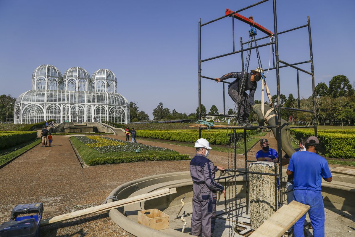 O trabalho, feito em conjunto com a Fundação Cultural de Curitiba, tem previsão de duração de dois meses e começou na quarta-feira (18) com a retirada da peça, levada ao ateliê de esculturas do Memorial Paranista.