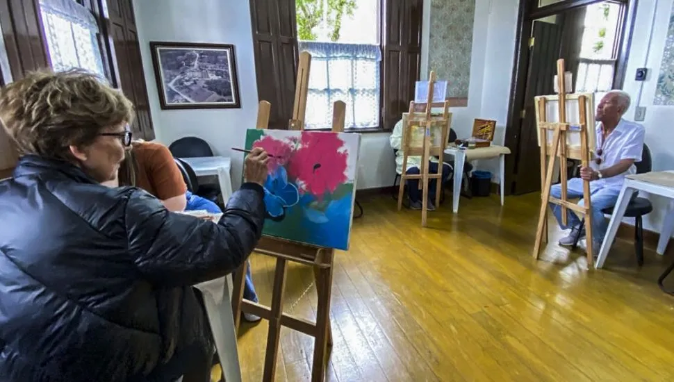 Tânia Regina Krachinski Caddah, de 67 anos, frequenta as aulas de pintura em tela como forma de estimulação cognitiva e motora, pois tem Alzheimer. Já Jorge Luiz Rodrigues do Couto, de 70 anos, e Darci Estevam, de 79, encontraram na pintura uma nova atividade após a aposentadoria.