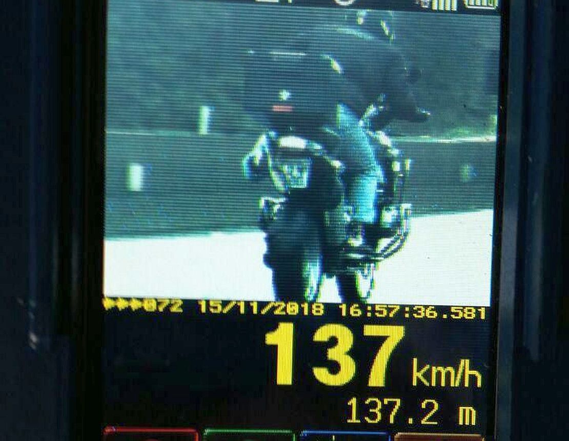 A Polícia Rodoviária Federal (PRF) flagrou na tarde desta quinta-feira (15) em Morretes, litoral do Paraná, um motociclista que trafegava pela BR-277 acima da velocidade máxima permitida. Ao perceber que estava sendo fiscalizado, o homem usou o pé esquerdo para esconder a placa. O flagrante foi feito por volta das 16h57, na pista sentido litoral da rodovia, na Serra do Mar. Ele transitava a 137 km/h em um trecho onde o limite máximo é de 80 km/h.