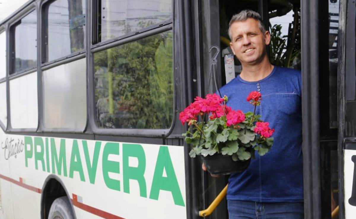 O proprietário do negócio é Rodrigo Oliveira, 40 anos, que relata que a floricultura no ônibus já tem quase dez anos. Entretanto, a ideia de vender plantas nas ruas começou há mais tempo. Na verdade, bater de casa em casa oferecendo uma flor faz parte da criação do empreendedor.
