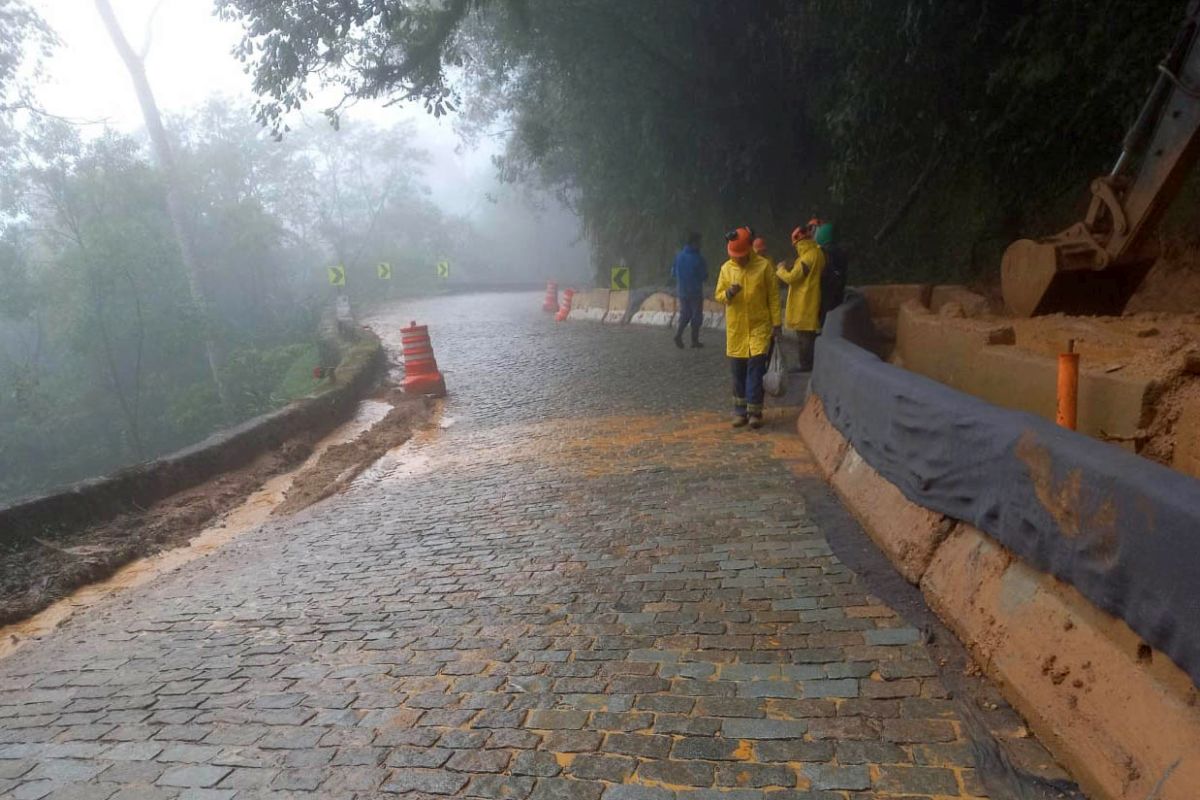 Segundo o departamento, “depois da redução dos níveis pluviométricos na serra, e constatação de estabilidade nos demais pontos em obras, o tráfego voltou a circular na rodovia, assim que foram concluídos os serviços de limpeza da pista, atingida por escorregamento de lama e vegetação na altura do km 11+200”.