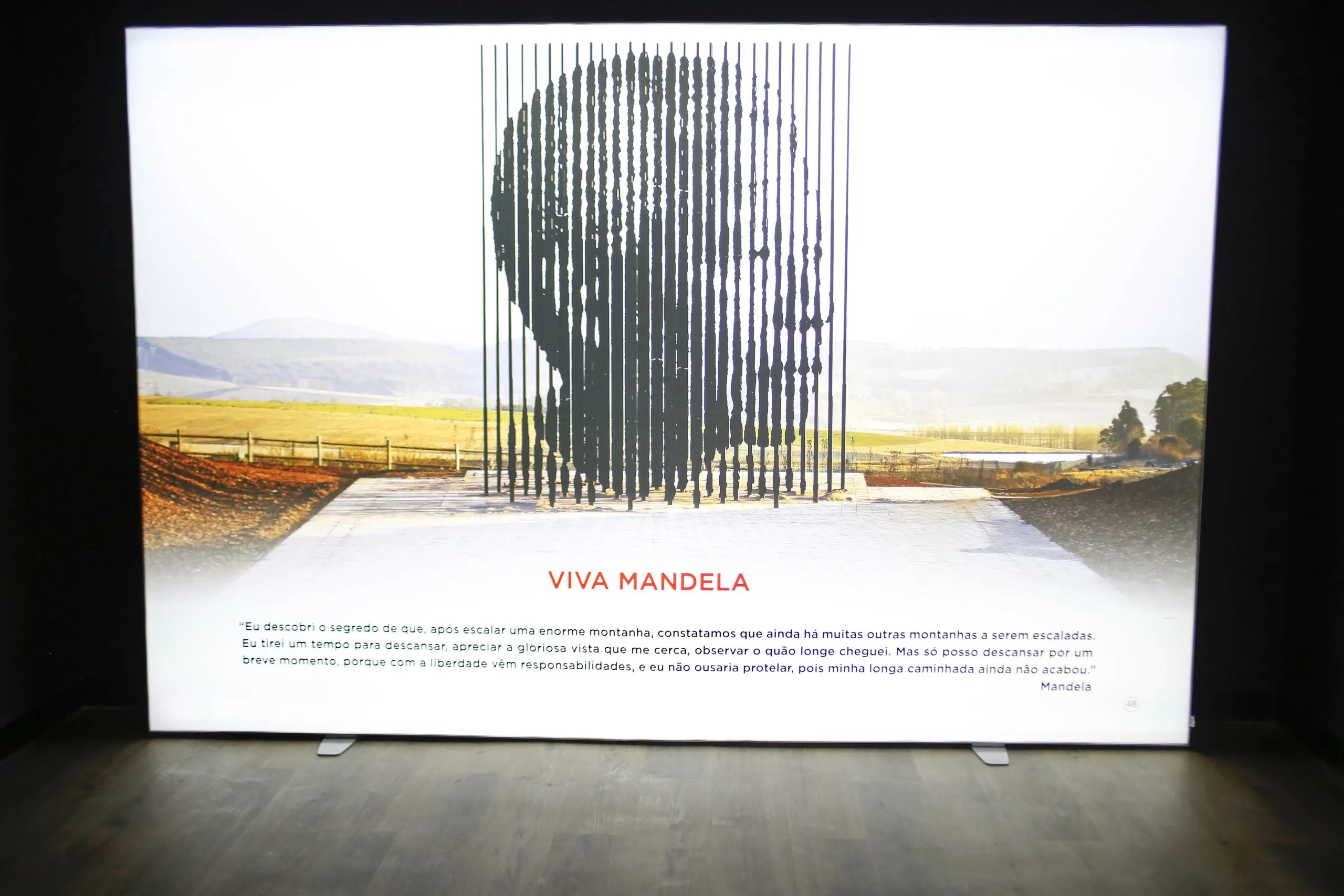 Realizada pelo Instituto Brasil África em parceria com a Nelson Mandela Foundation, a exposição apresenta uma experiência multimídia sobre o legado do ativista e político sul-africano Nelson Mandela (1918-2013). São 50 painéis fotográficos e uma instalação audiovisual que percorrem momentos centrais da trajetória de Mandela, desde sua formação de valores até seu papel na transição democrática da África do Sul.