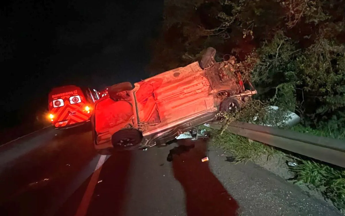 De acordo com o Corpo de Bombeiros, o veículo trafegava pelo km 71, sentido Curitiba, quando atravessou a pista e capotou. Todos os ocupantes foram ejetados do carro.