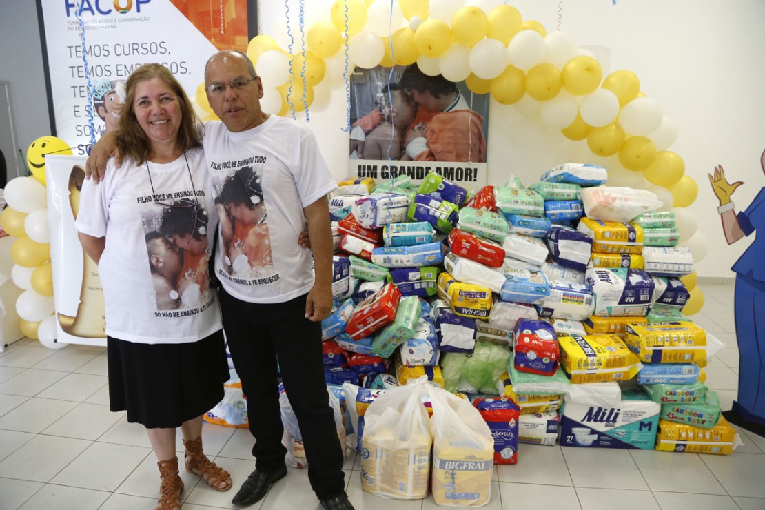 Famílias de 56 crianças especiais receberam doação de pacotes de fraldas durante a reunião do projeto Confraternização de Crianças Especiais realizado neste domingo (17), na sede da Fundação de Asseio e Conservação do Estado do Paraná (FACOP), em Almirante Tamandaré. A festa acontece anualmente no dia 17 de setembro.