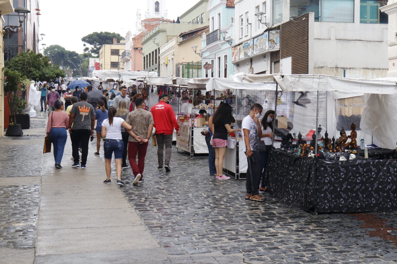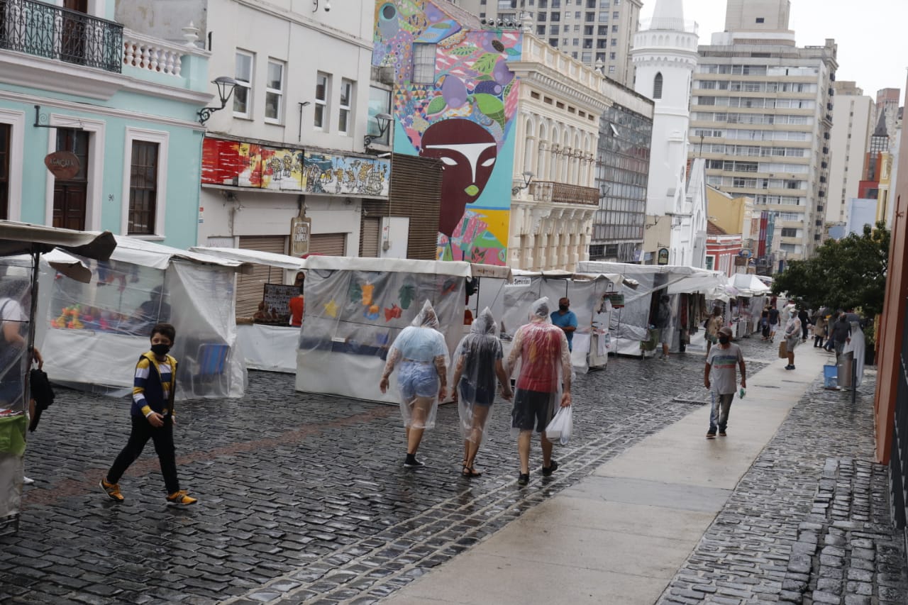 “É um teste, mas torcemos para que no próximo domingo, estejamos aqui também”, assim define a maioria dos feirantes ouvidos pela Tribuna do Paraná na mais tradicional feirinha de Curitiba. Neste domingo (24), a Feira de Artesanato do Largo da Ordem foi liberada para funcionar, de maneira excepcional, e mesmo com uma chuvinha as pessoas apareceram. Mas a esperança dos feirantes é de que, nos próximos domingos, a decisão se repita.