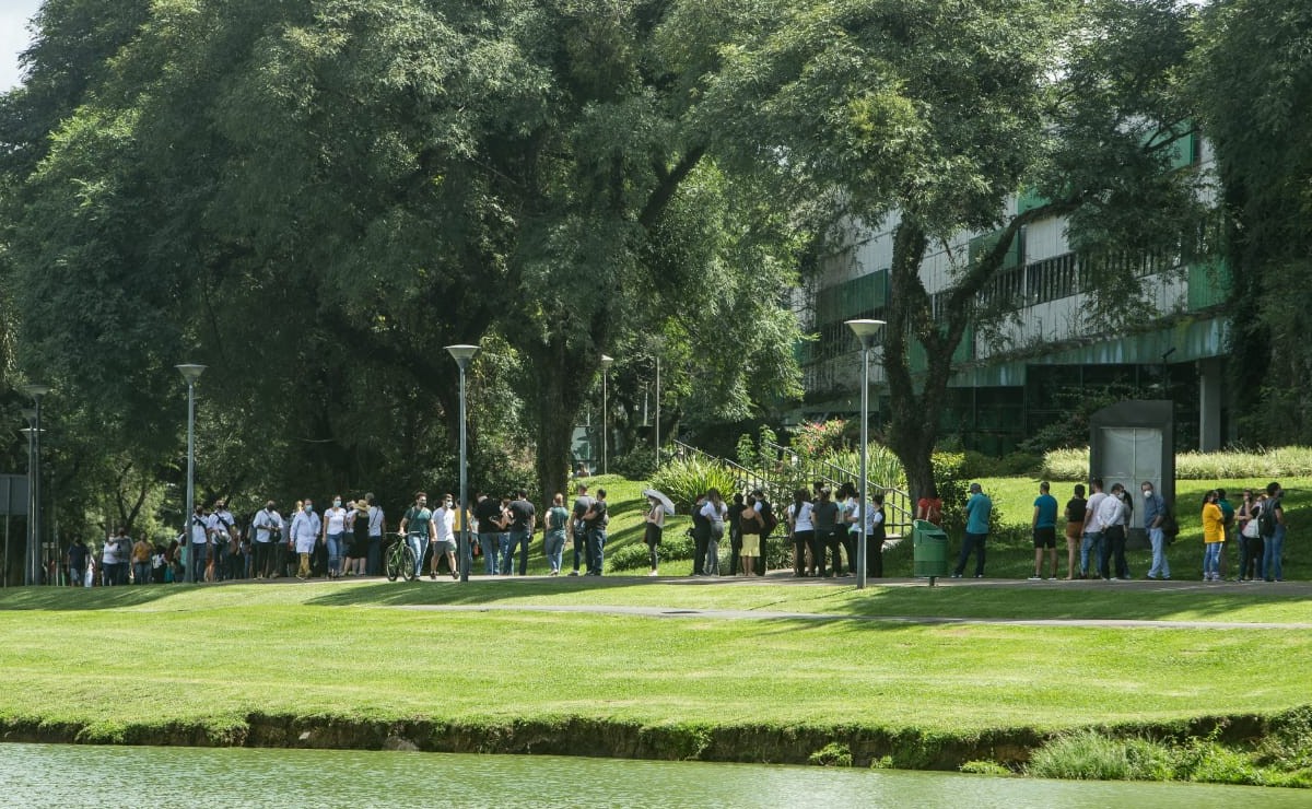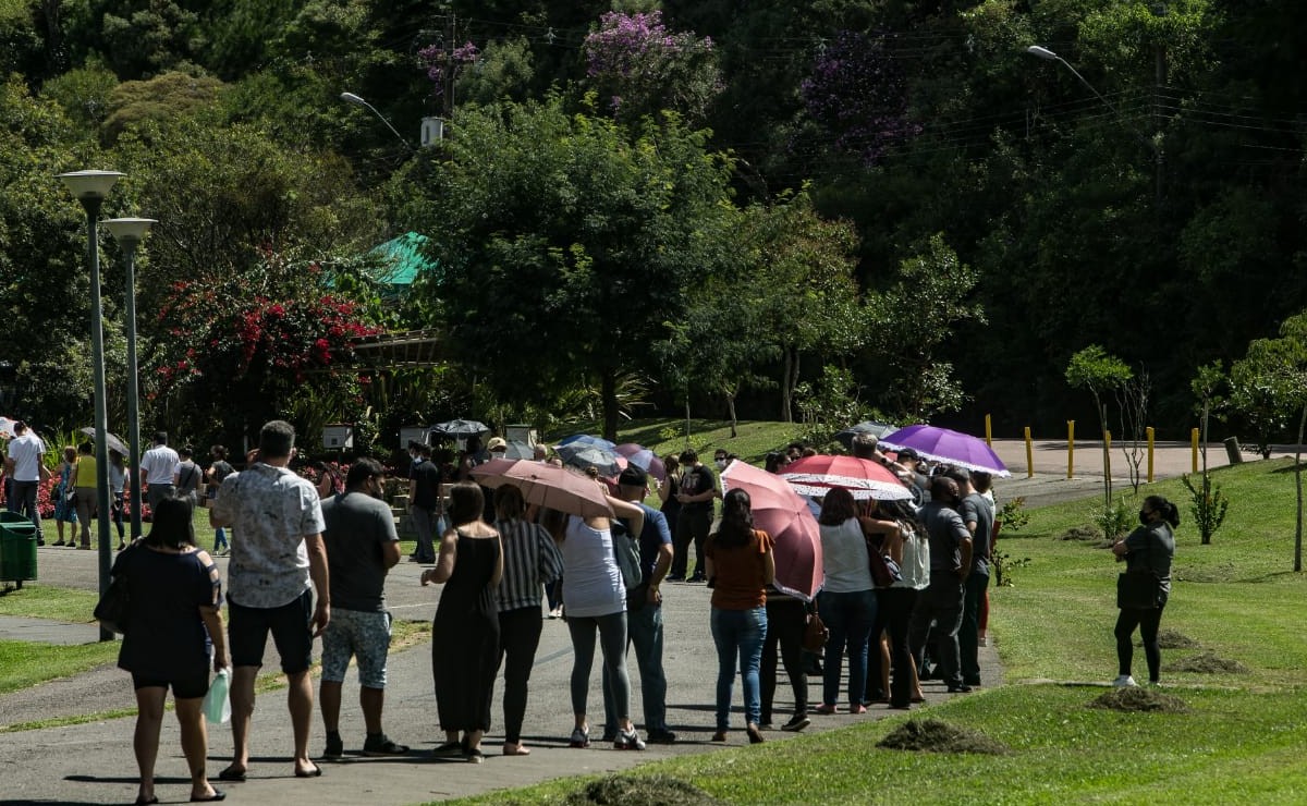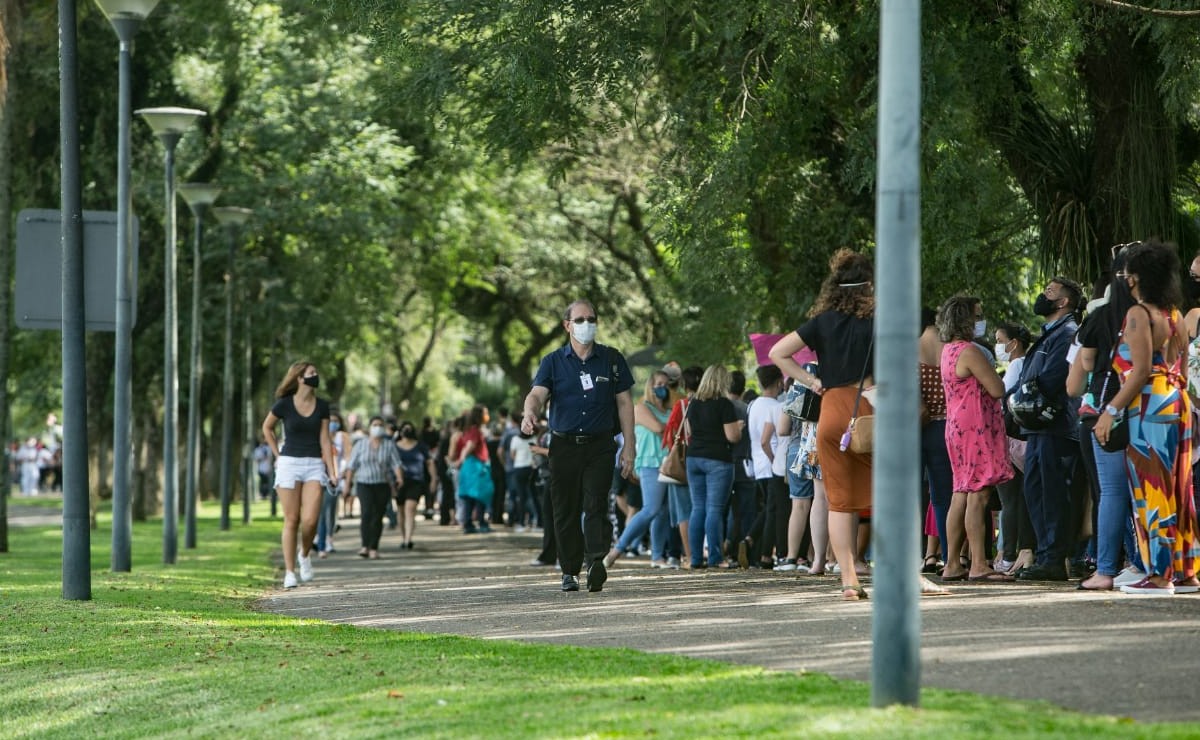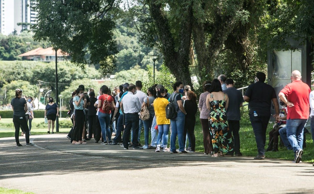 A fila para a vacina contra o coronavírus (covid-19) no drive-thru do Parque Barigui, em Curitiba, era gigante na manhã desta quinta-feira (25). O grupo que está sendo vacinado é o da faixa dos 73 anos, nascidos de entre 1.º de janeiro e 30 de junho. Em outro local de vacinação na capital, na Praça Ouvidor Pardinho, a fila também era grande e o tempo médio de espera chegou a oscilar entre 40 minutos e uma hora. A recomendação dos órgãos de saúde é para que as pessoas não procurem só os locais no Barigui ou na Ouvidor Pardinho, mas que busquem os outros pontos de vacinação na cidade para evitar a formação de filas. No Barigui, segundo relatos recebidos pela Tribuna, algumas pessoas aguardaram mais de quatro horas na fila, sob o sol forte.
