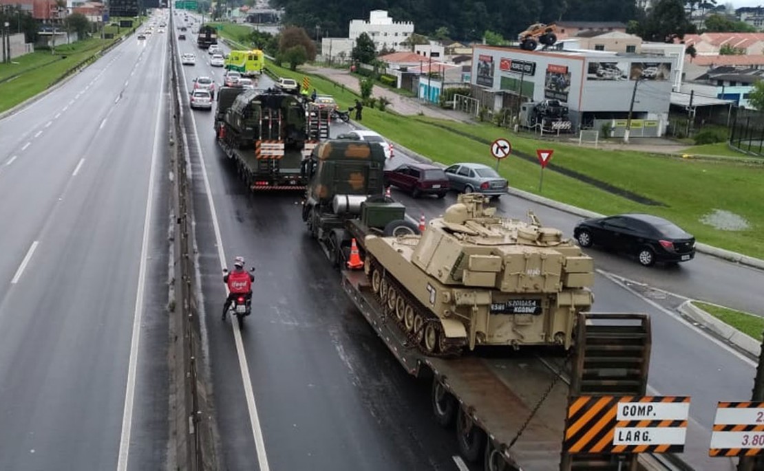 Um comboio diferente chamou a atenção de quem passava pela Avenida Francisco Albizu, no bairro Bacacheri – em Curitiba – na manhã deste domingo (07). A fila de tanques de guerra blindados passou por ruas de Curitiba e chegou ao bairro por volta das 12h30. O destino final era o Parque Regional de Manutenção 5, parte da 5ª Região Militar – onde passarão por um processo de restauração.