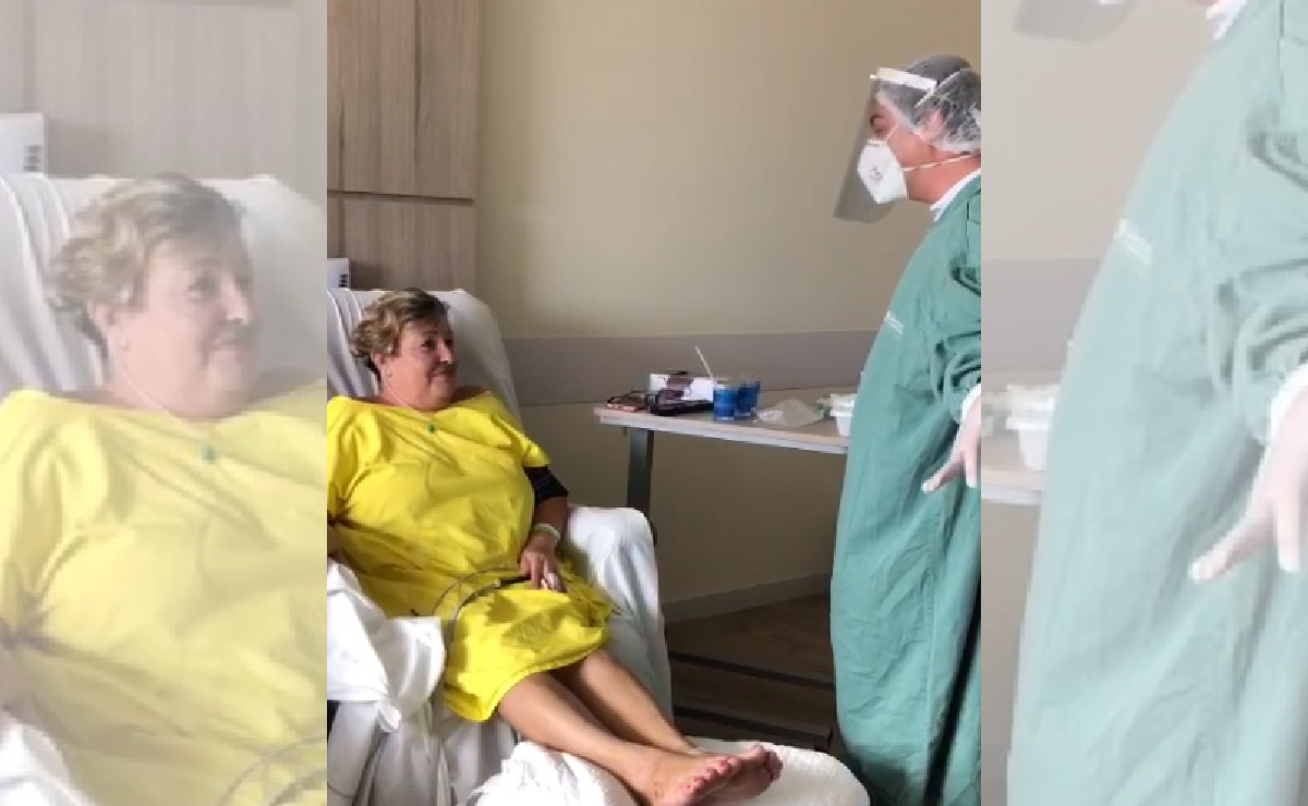 Elza Maria Zawadzki,57 anos, está internada no Hospital Marcelino Champagnat com a covid-19 desde o dia 3 de março. Já demonstrando recuperação, ela também vem utilizando uma espécie de “capacete de astronauta”, chamado de Helmet. Quanto a canção da Cinderela, ela aprovou e pediu bis. “ Foi muito emocionante e não se tem palavras para dizer. Estamos na expectativa nova de vida e grandeza. É muito bom e deveria ter todos os dias em todos os hospitais, especialmente pacientes covid-19. Foi maravilhoso!”, comentou Elza.