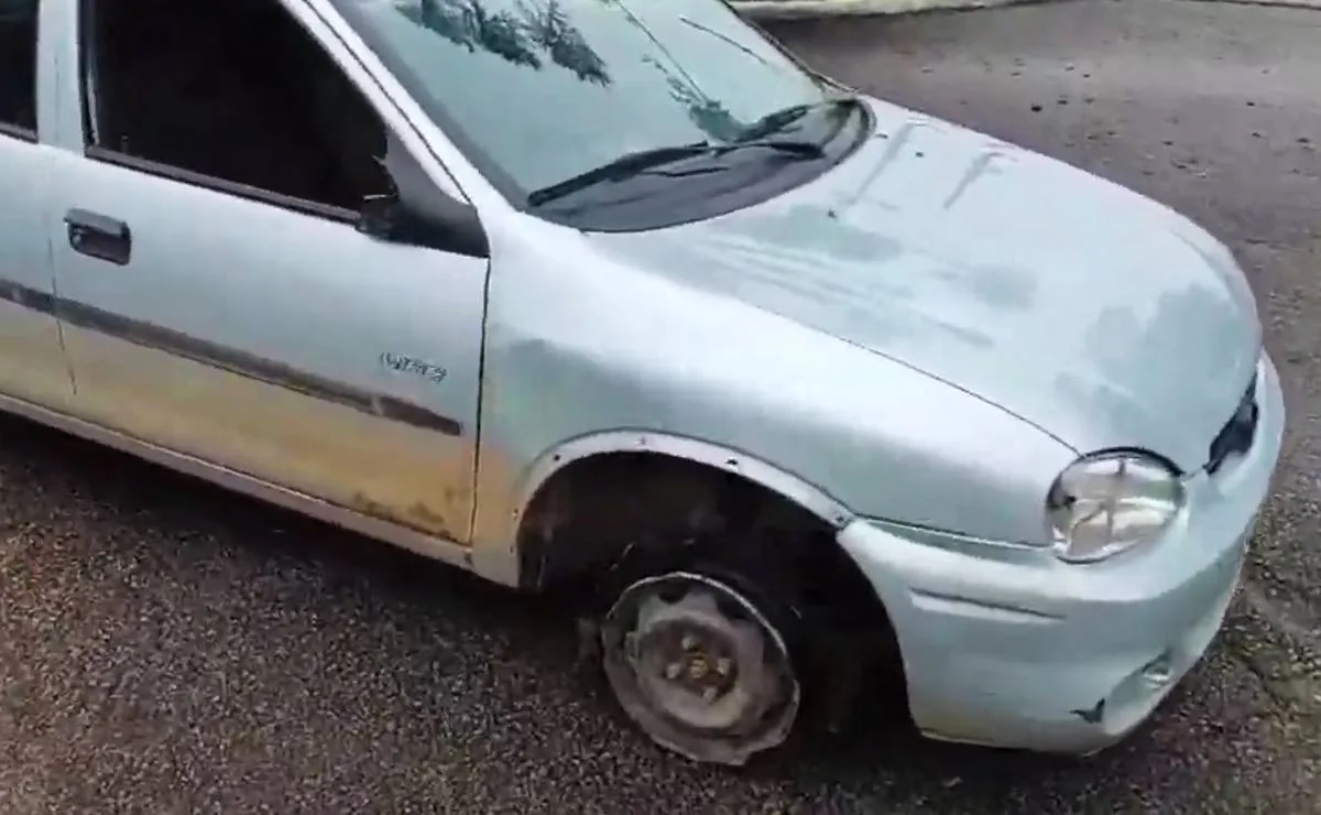 Os agentes chegaram ao local e notaram que a mulher tomava uma lata de cerveja, no banco do passageiro. Na vistoria do veículo, perceberam que o pneu dianteiro direito estava estourado e a mulher, sem perceber, dirigia o carro com a roda “no aço”, isto é, sem o pneu. Dentro do carro, duas latas vazias de cerveja foram encontradas.