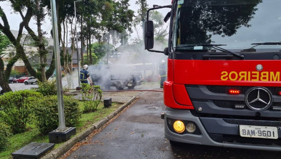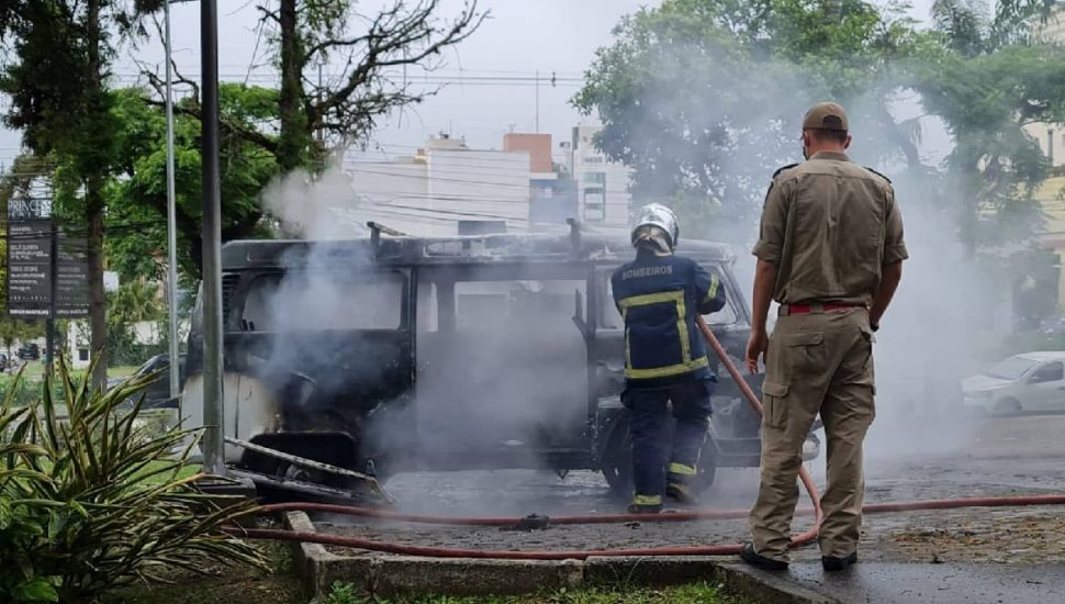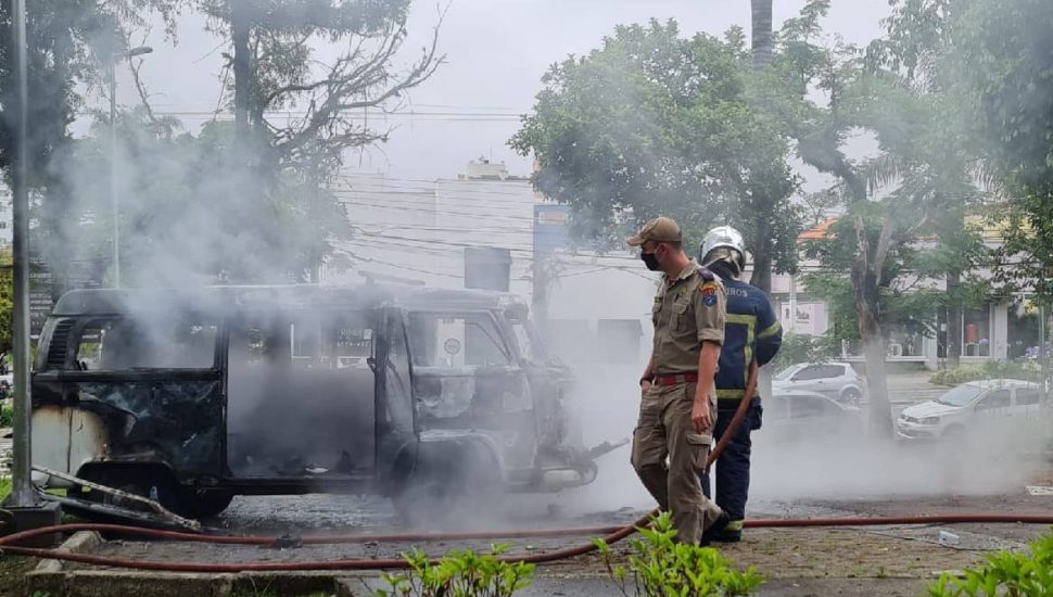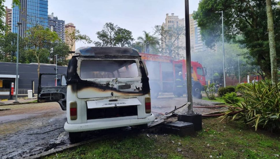 Uma Kombi branca pegou fogo no estacionamento do Mcdonald’s Cabral, na manhã desta quarta-feira (10). Três pessoas presenciaram a cena e saíram sem ferimentos. A lanchonete estava fechada quando ocorreu o incêndio e vai funcionar normalmente durante o dia. Vídeo abaixo, feito pelo colunista da Tribuna Filipi Oliveira, flagra o momento em que o veículo ainda pegava fogo, com chamas, fumaça preta e explosões.
