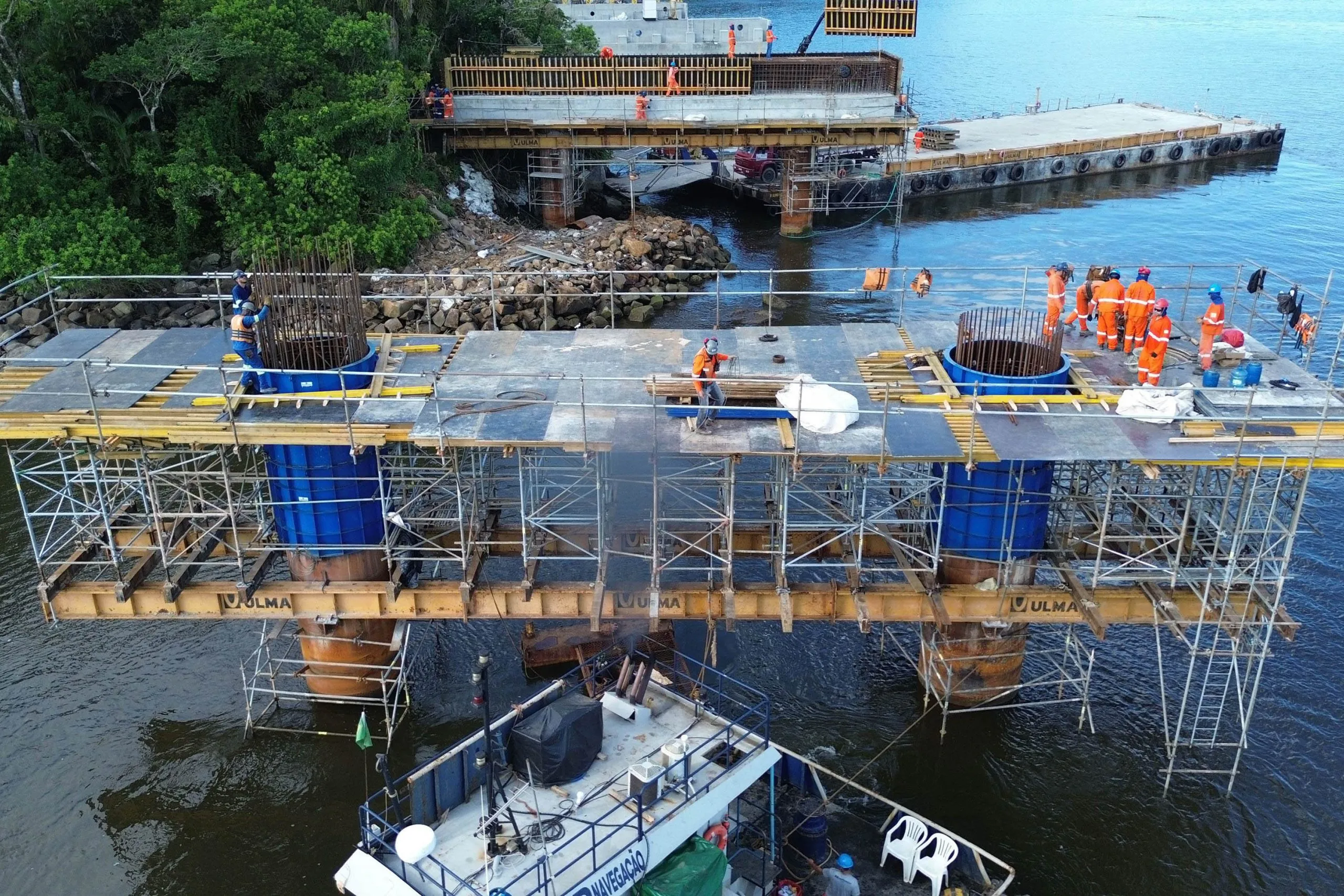 Até o momento, 40 das 64 estacas planejadas foram concluídas, distribuídas entre os trechos estaiado e pré-moldado. O próximo passo é a execução da aduela de partida, uma técnica que permitirá a construção de grandes vãos sem necessidade de escoramento.